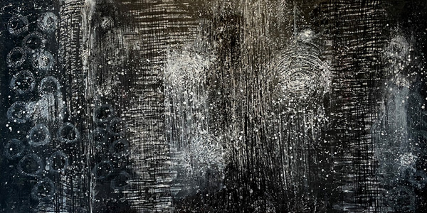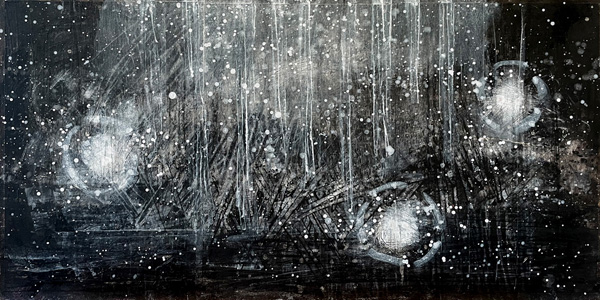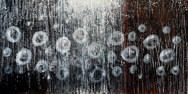 Værkerne på denne side er alle malerier, som hovedsagligt er fremstillet med akrylmaling. Titlerne på de 2 øverste er Natregn # 1 og # 2.